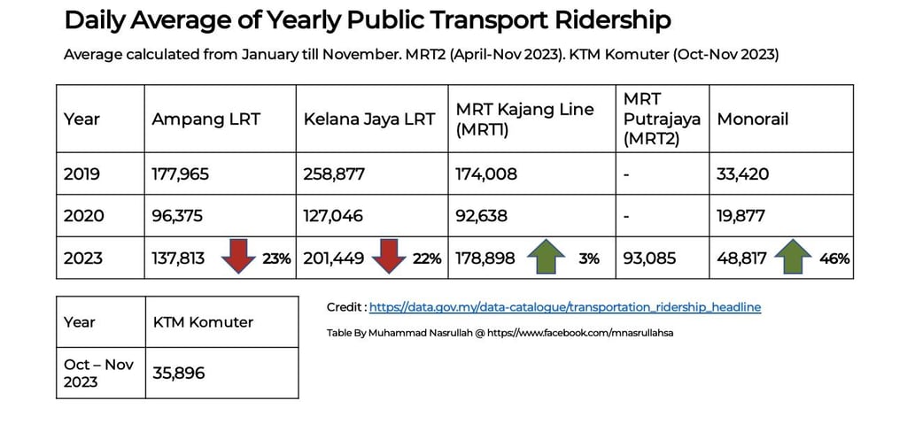 Note: The data for KTM komuter available only for 2 months of October and November 2023. Other data provided are only until November 2023.